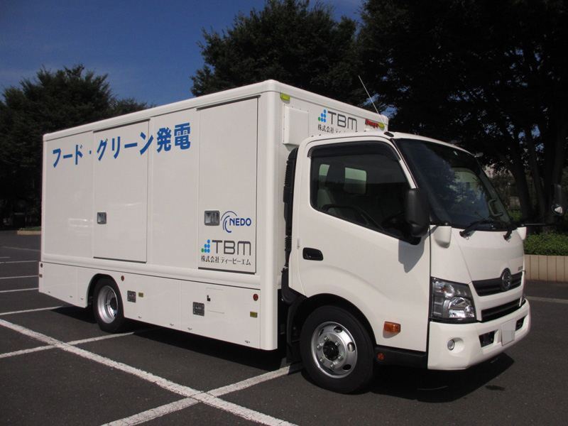 NEDO(国立研究開発法人 新エネルギー・産業技術総合開発機構)と、水質浄化と二酸化炭素排出削減のための都市型バイオマス発電を研究・開発する株式会社ティービーエム(埼玉県所沢市)は、2014年6月に飲食店や商業施設、食品工場など(以下、事業所)から排出されるトラップグリース(排出油脂)を原料とする発電用燃料の製造に日本で初めて成功。以来、安定的な発電技術の開発を推進し、ことし9月にこの燃料を利用し発電する発電機を搭載したバイオマス発電車の開発を発表した。