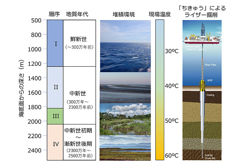 その下には約1029細胞の微生物が生息する広大な“海底下生命圏”の存在が知られており、これまでにも国際的な科学掘削調査が行われている。