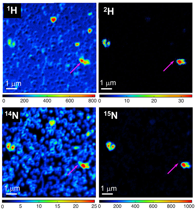 海底下2kmの石炭層から検出された微生物細胞のNanoSIMSを用いた元素組成イメージ