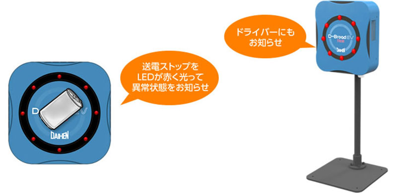 さらに、送受電コイル間に空き缶などの金属が誤って置かれた場合、それらを検知して送電をストップ。LEDが赤く点灯してドライバーに状況を知らせるなど、異常発熱による事故を防ぐ手立ても対応・処置されている。これも街中での使用を想定してのことだ。