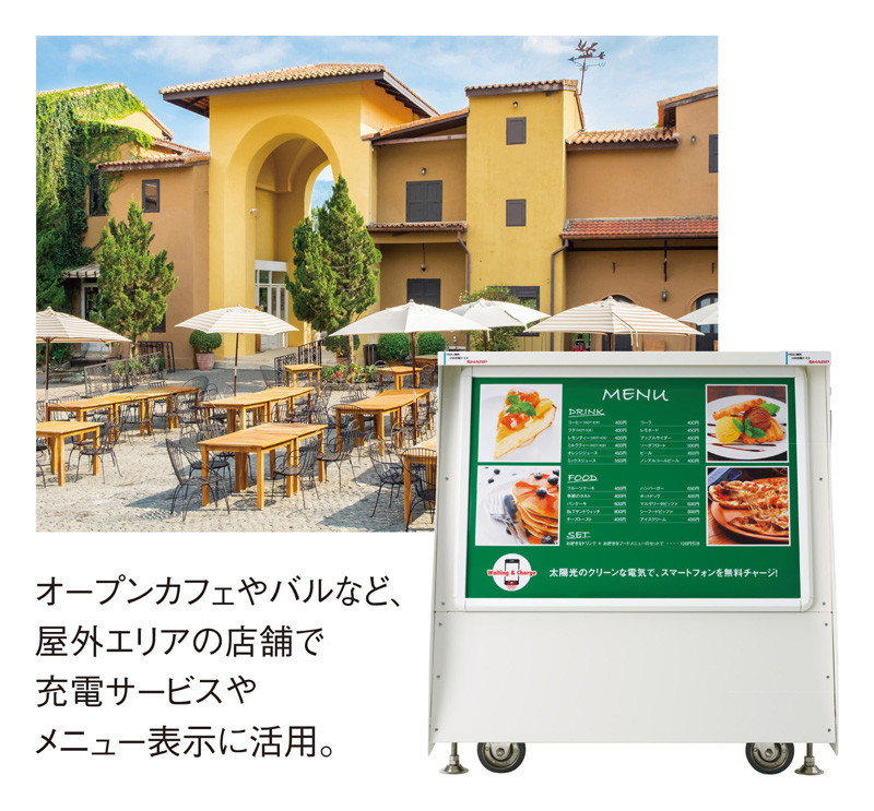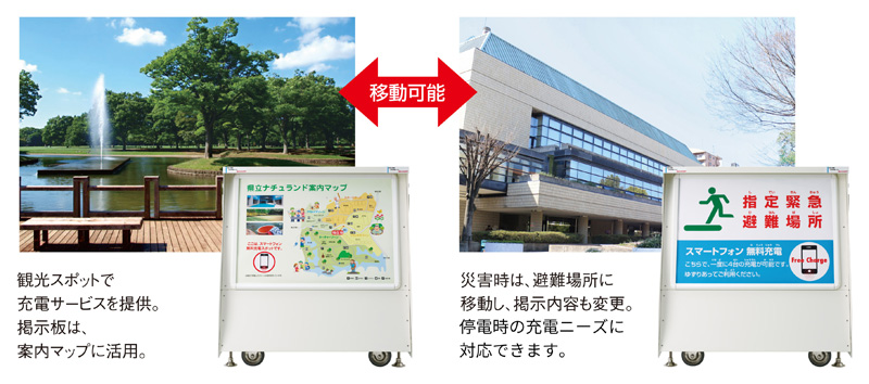 同社では、テラス席や屋内イベントでの活用のほか、地域の避難場所に設置することで万一の災害発生時の非常用電源として充電ニーズに応えることができるとしている。