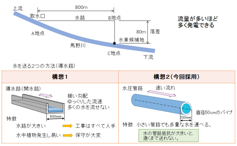 そこで坂内特任教授が考案したのが、導水路に直径約50cmのパイプを用いるという国内初の試みだ。