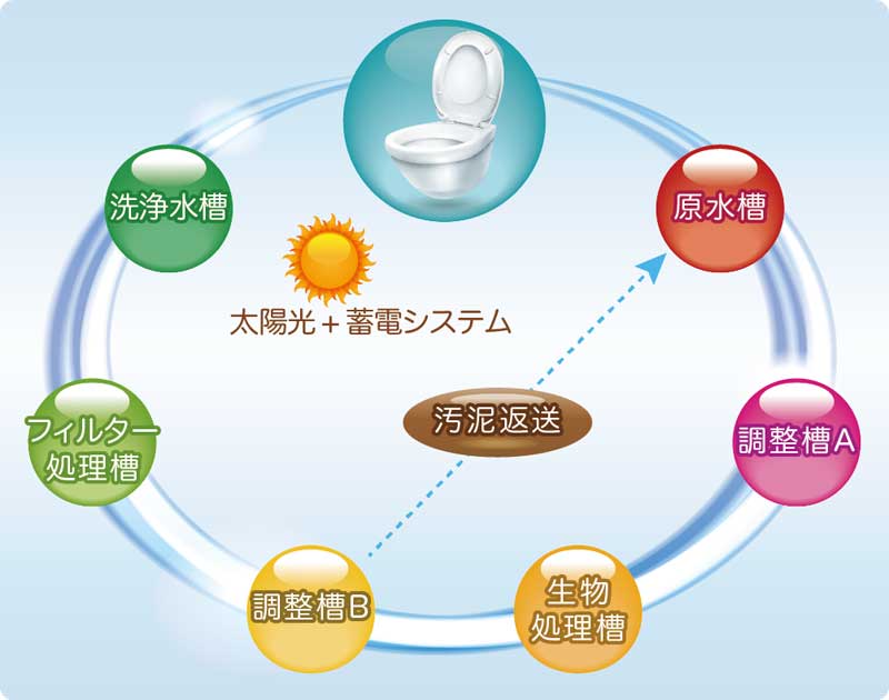 排せつ物をバイオ処理してきれいな水を循環