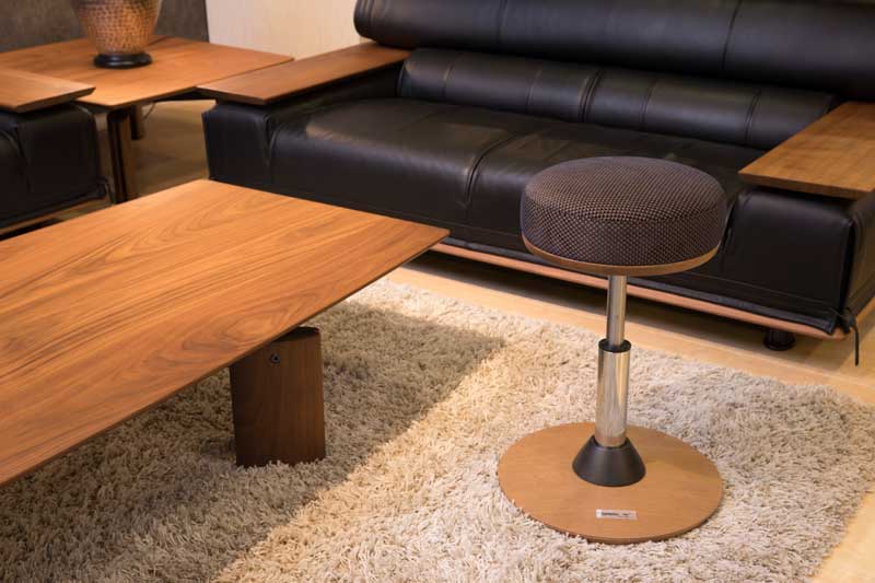 そこでミズノとカリモク家具は両社の強みを融合させ、スクワット運動を正しくサポートできる背もたれのない椅子(スツール)「スクワットアーブル」を開発した。