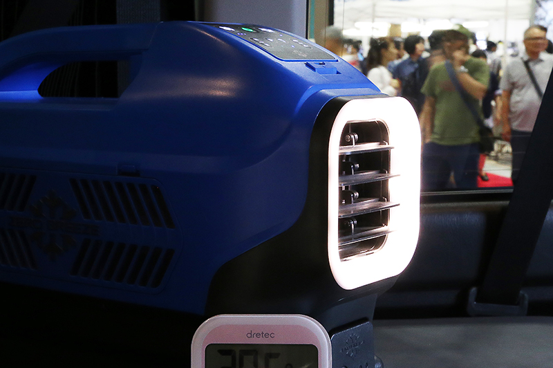 7月21・22日に開催された東京キャンピングカーショー2018(東京ビッグサイト)に「Zero Breeze」を含む数種の製品を出展。空調の効いたブースでは実際の使用環境とは多少異なるもののデモ機を設置し、来場者にその性能をアピールした。