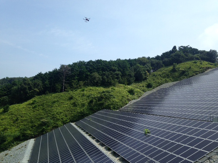 橋梁や送電線だけでなく、同社は太陽光や風力などの再生可能エネルギー発電設備向けのドローンにも力を入れてきた。赤外線カメラによるメガソーラーの点検作業を担った事例もある。