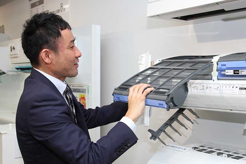 「ユーザーアンケートをとると、“しっかり掃除したい”という方と、“触りたくない”という方が半々。弊社としては両方に対応したいと考えています。つまり、掃除したいという方には“メンテナンス性を向上させる”こと。そして掃除をしたくないという人には“自動できれいに保つ”エアコンを作ることです」