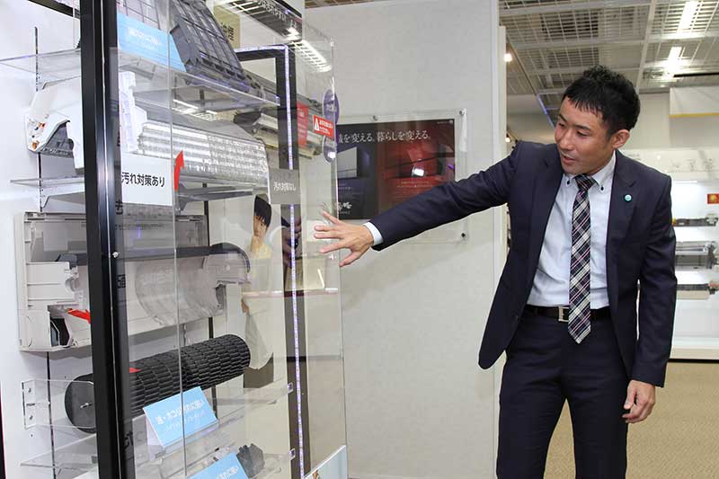 「コンセプトは私が作っていきました。明確だったのは樹脂そのものに親水性汚れと疎水性汚れの両方を防ぐ機能を持たせた“練り込み樹脂でやりたい”ということ。それができれば、前述した見た目の問題も、さらに言えばエアコン内部の汚れを防ぐことにも生かすことができます。例えば、悪臭を防ぐことにもつながっていくのです」