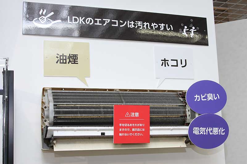 エアコンには、親水性と疎水性という、相反する性質を持つ汚れが付着する。だからこそ厄介な課題となっている
