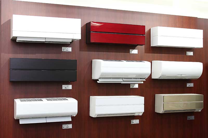 三菱電機が現在リリースするエアコンの主なラインアップ。国内はもちろん、アジアや中東など海外でも高い人気を誇る
