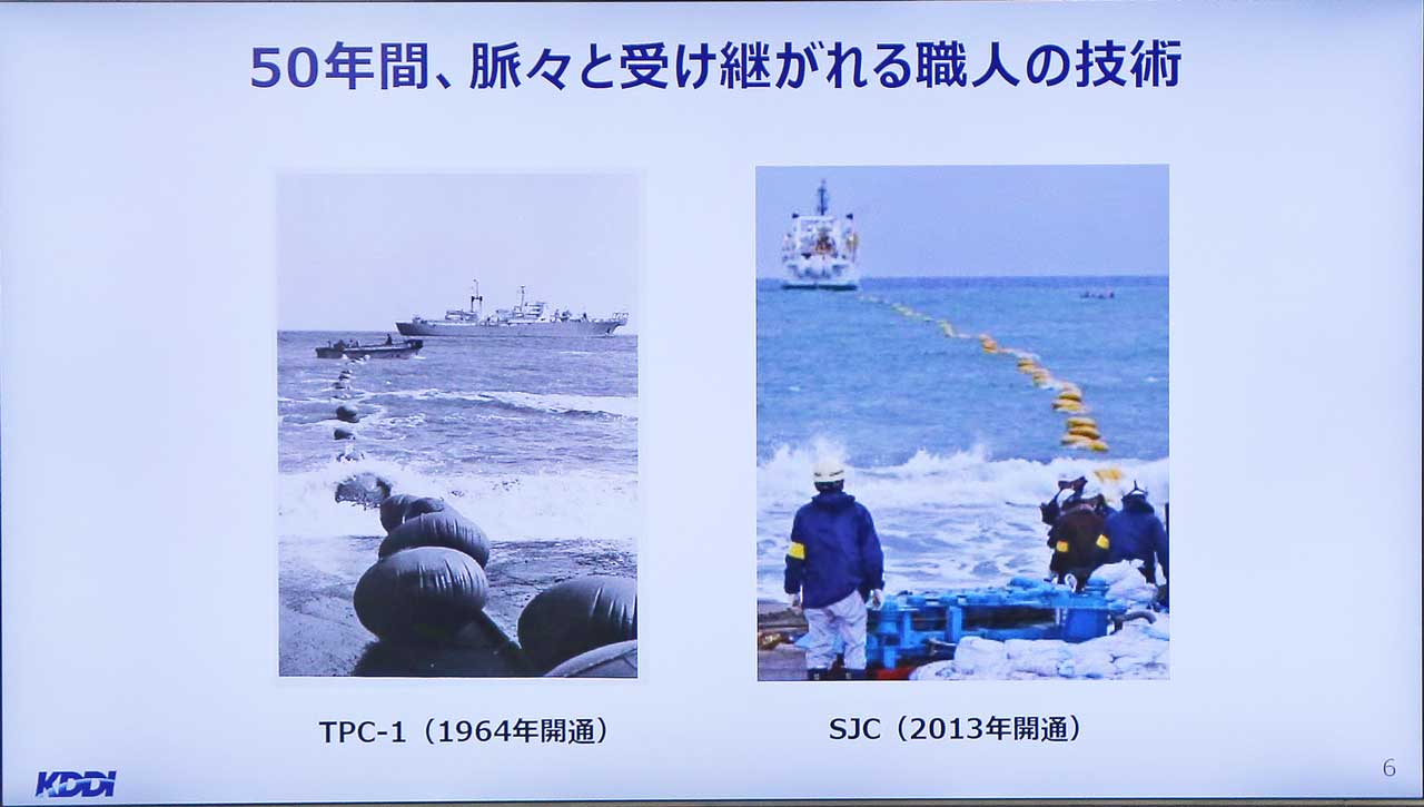 TPC-1はKDDIの前身の一つである国際電信電話(KDD)が1964(昭和39)年に米AT&T、ハワイ電話会社と共に建設した太平洋横断海底ケーブル。